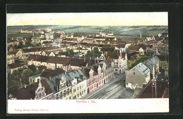 Relief-AK Hartha i. Sa., Teilansicht aus der Vogelschau