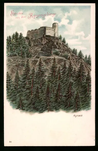 Relief-AK Hirschberg, Ruine auf dem Kynast