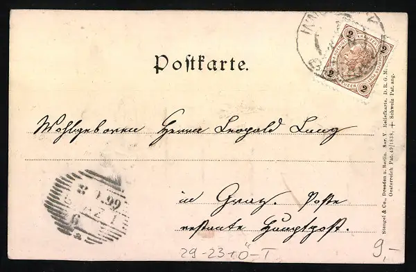 alte Ansichtskarte, gelaufen 1899, guter Zustand