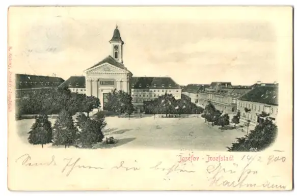 Relief-AK Josefstadt, Strassenpartie mit Kirche
