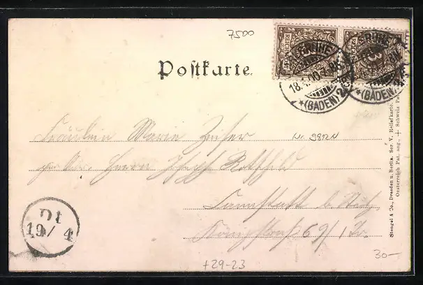 alte Ansichtskarte, gelaufen 1900, guter Zustand