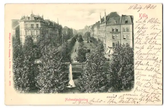 Relief-AK Köln-Neustadt, Hohenstaufenring mit Fontäne und Strassenbahn