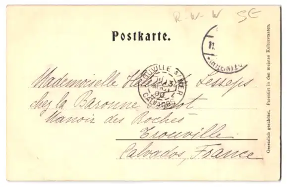 alte Ansichtskarte, gelaufen, Briefmarke entfernt, guter Zustand