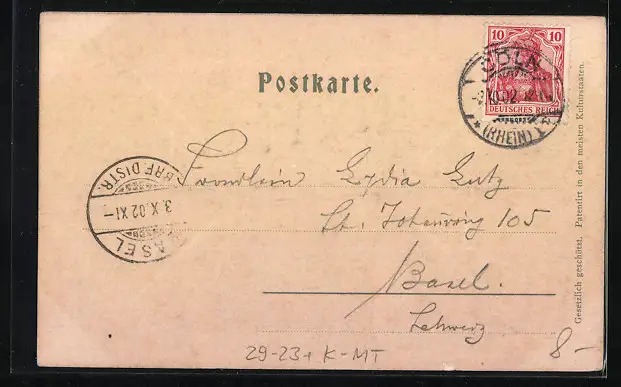 gelaufen 1902, guter Zustand