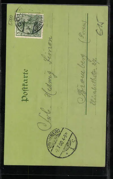 alte Ansichtskarte, gelaufen 1900, guter Zustand