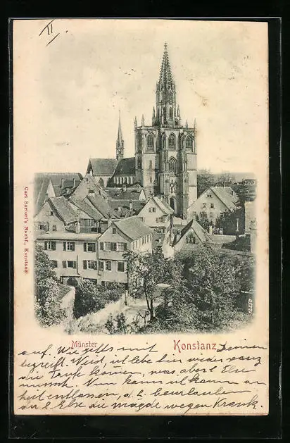 Relief-AK Konstanz, Fliegeraufnahme des Münsters