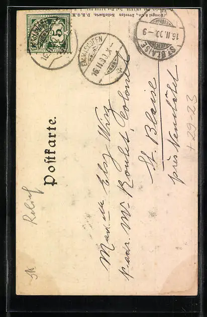 alte Ansichtskarte, gelaufen 1900, guter Zustand
