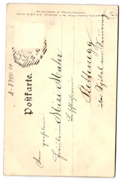 alte Ansichtskarte, gelaufen, Briefmarke entfernt, rückseitig Oberflächenschaden, guter Zustand