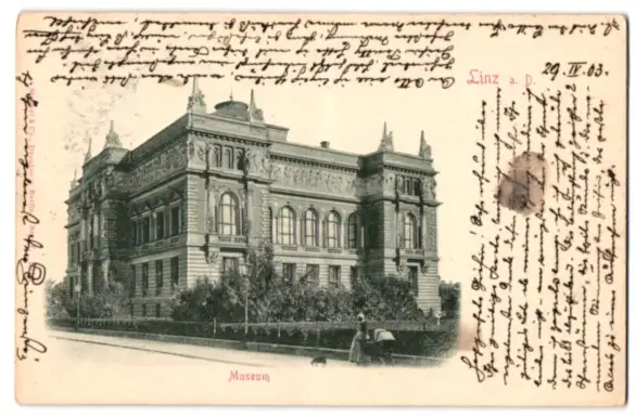 Relief-AK Linz a. Donau, Museum in der Strassenansicht