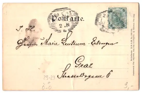 gelaufen 1903, vertikale Bugspur mittig, guter Zustand