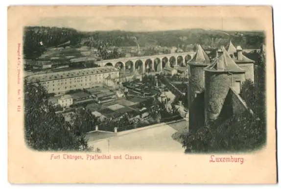 Relief-AK Luxemburg, Fort Thüngen Pfaffenthal und Clausen