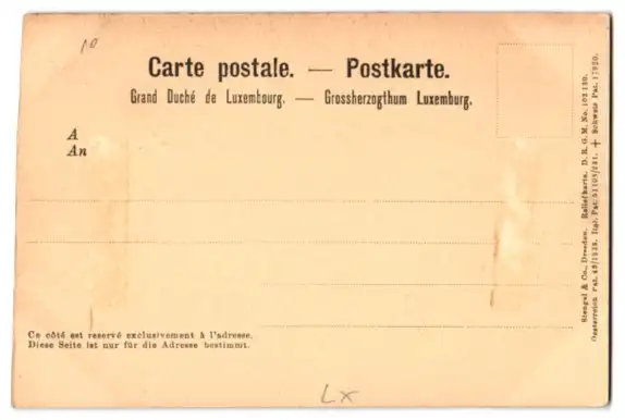 Personenbezogene Daten auf der Rückseite der Karte wurden durch blauen Textmarker unkenntlich gemacht. Die blauen Stellen sind auf die Vorderseite durchgeweicht und wirken sich negativ auf das Postkartenfoto aus