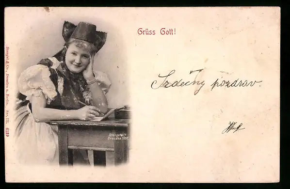 Relief-AK Mädchen in Tracht schreibt einen Brief