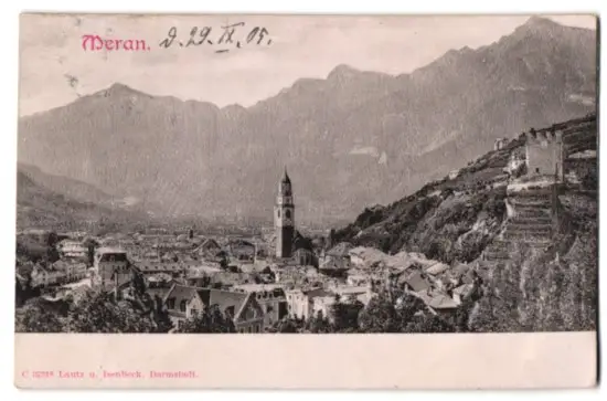 Relief-AK Meran, Totalansicht aus der Vogelschau