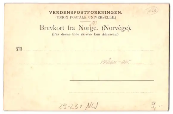 Personenbezogene Daten auf der Rückseite der Karte wurden durch blauen Textmarker unkenntlich gemacht. Die blauen Stellen sind auf die Vorderseite durchgeweicht und wirken sich negativ auf das Postkartenfoto aus