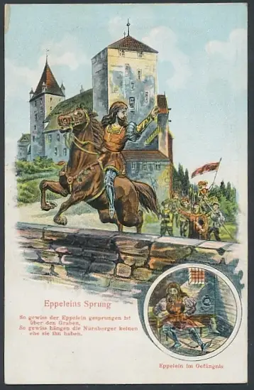 Relief-AK Nürnberg, Eppeleins Sprung, Eppelein im Gefängnis