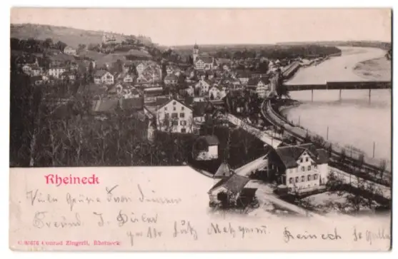 Relief-AK Rheineck, Ortsansicht aus der Vogelschau