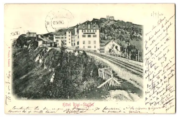 Relief-AK Rigi-Staffel, Hotel und Bergbahn
