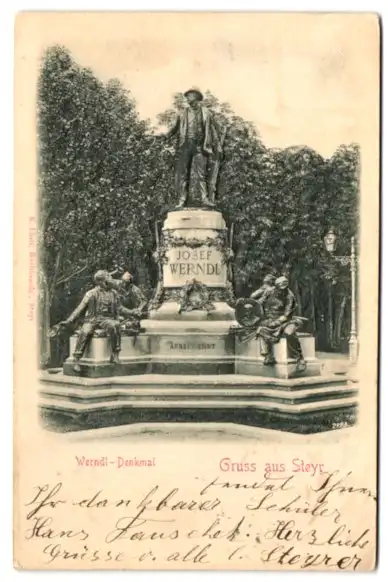 Relief-AK Steyr, Blick aufs Werndl-Denkmal
