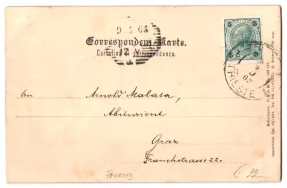 alte Ansichtskarte, gelaufen 1903, Stempelspur, guter Zustand