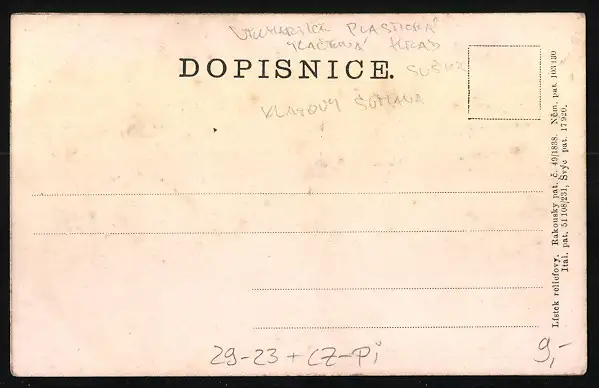 Personenbezogene Daten auf der Rückseite der Karte wurden durch blauen Textmarker unkenntlich gemacht. Die blauen Stellen sind auf die Vorderseite durchgeweicht und wirken sich negativ auf das Postkartenfoto aus