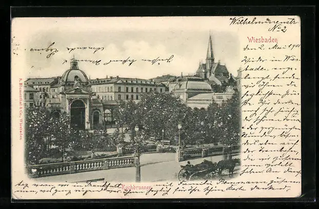 Relief-AK Wiesbaden, Partie am Kochbrunnen