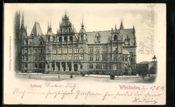 Relief-AK Wiesbaden, Rathaus mit Strasse