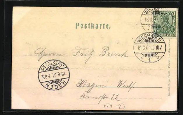 alte Ansichtskarte, gelaufen 1901, guter Zustand