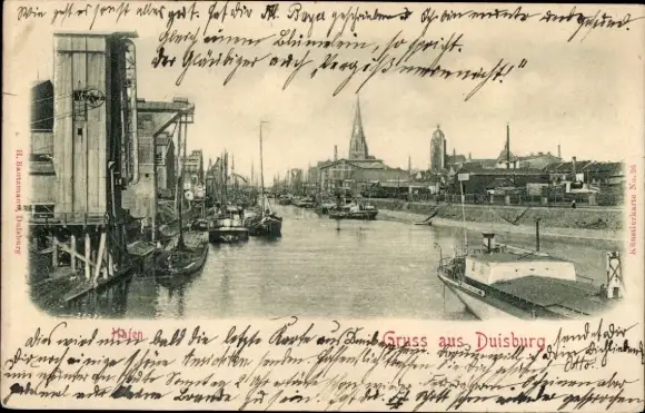 Relief Ak Duisburg im Ruhrgebiet, Hafen