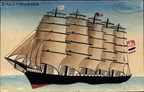 Relief Ak Fünfmast-Vollschiff Preußen, Segelschiff