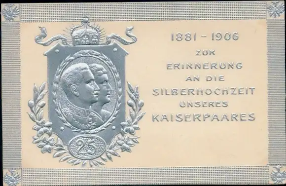 Relief Ak Kaiser Wilhelm II., Kaiserin Auguste Viktoria, Silberhochzeit 1906