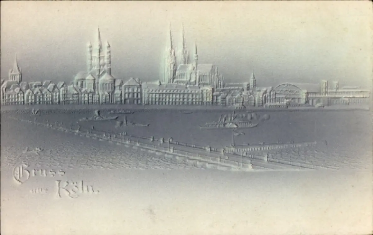 Relief Ak Köln am Rhein, Rheinpanorama