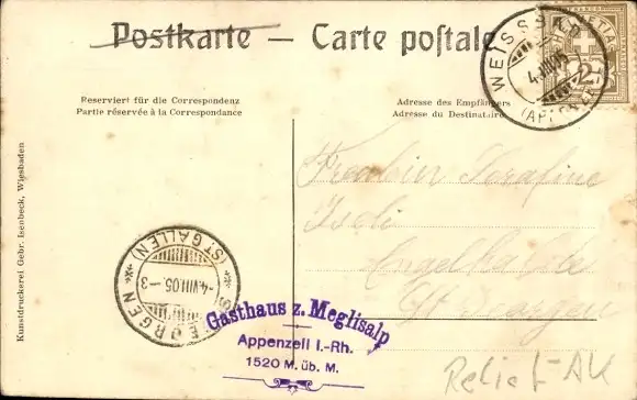 Relief Ak Meglisalp Appenzell Innerrhoden Schweiz, Panorama, Gasthaus