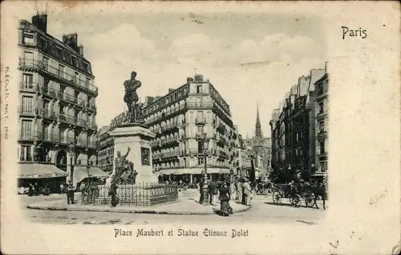 Relief Ak Paris I Louvre, Place Maubert, Statue Etienne Dolet