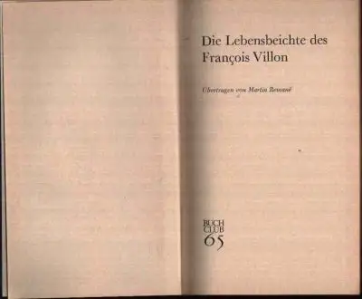 Die Lebensbeichte des Francois Villon