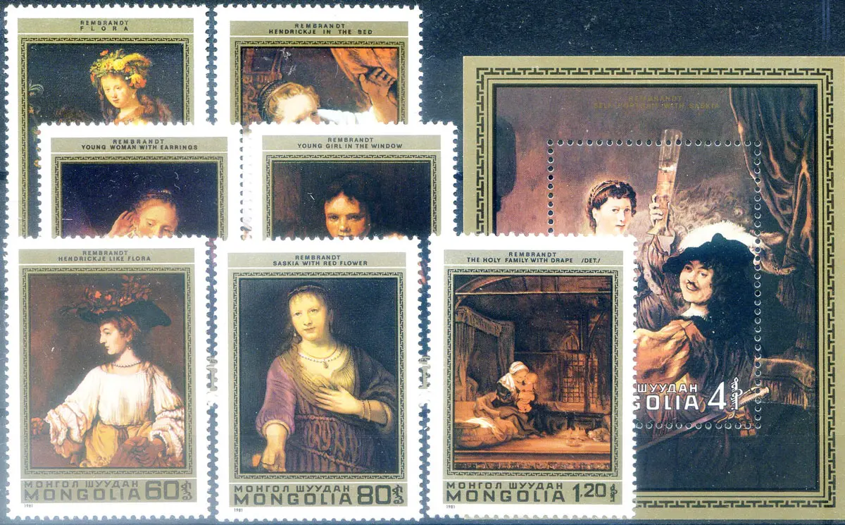 Rembrandt. Serie + Zettel. Michel 2020: 1398/1404 + BL 74 (**) - Euro 10,00.