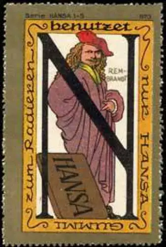 Benutzet nur Hansa Gummi zum Radieren. Radiergummi, Buchstabenserie Hansa Nr. 3, Größe/Zustand: 7x5 , guter Zustand, Original alte Reklamemarke die seinerzeit für die Werbung benutzt wurde
