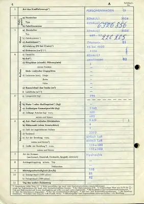 Renault 10 Major Original Fahrzeugbrief 1965