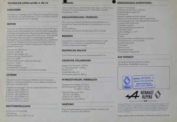 Renault Alpine A 310 Modellprogramm 1980 Automobilprospekt (7283)