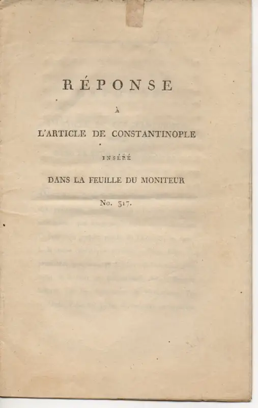 Titel: Réponse à l'article de Constantinople, inséré dans la feuille du Moniteur No. 317