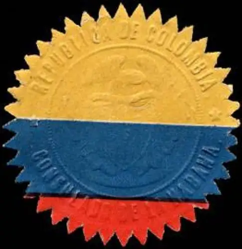 rot, blau, gelb, geprägt, Größe/Zustand: 5 , guter Zustand, Original Verschluss-Siegelmarke aus Papier welche früher von Behörden, Firmen etc. zum Versiegeln der Briefe benutzt wurden