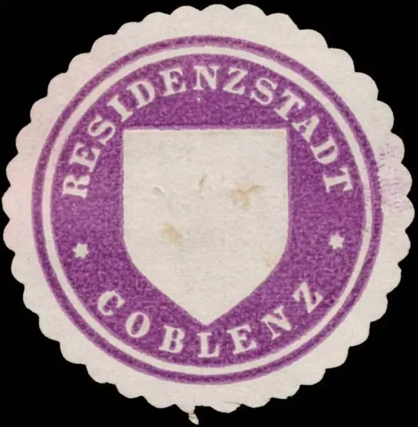 Coblenz, violett, weiß, geprägt, Größe/Zustand: 4 , beschädigt, Original Verschluss-Siegelmarke aus Papier welche früher von Behörden, Firmen etc. zum Versiegeln der Briefe benutzt wurden