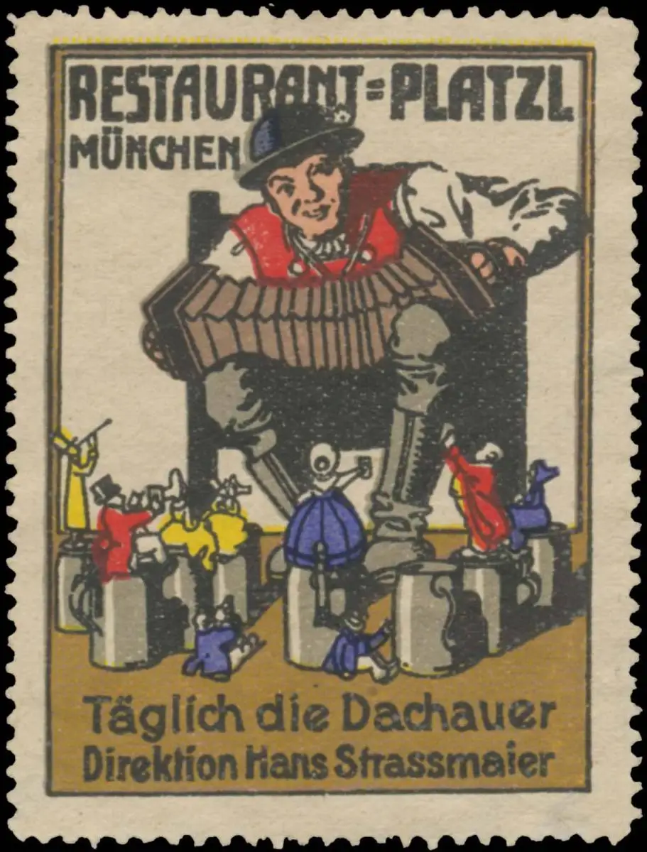 Täglich die Dachauer Direktion Hans Strassmaier, Größe/Zustand: 6x4 , guter Zustand, Original alte Reklamemarke die seinerzeit für die Werbung benutzt wurde