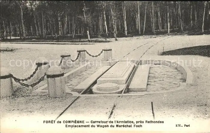 Rethondes Foret de Compiegne Carrefour de l'Armistice Marechal Foch Rethondes postalisch nicht gelaufen bis 1920 Erhaltung siehe scans Alte Ansichtskarte Postkarte Frieoerer