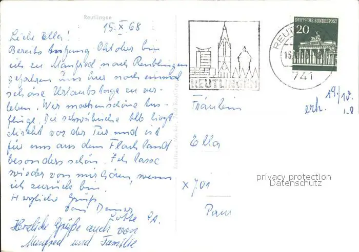 Reutlingen Reutlingen postalisch gelaufen 1968 Erhaltung siehe scans Alte Ansichtskarte Postkarte LiesID40