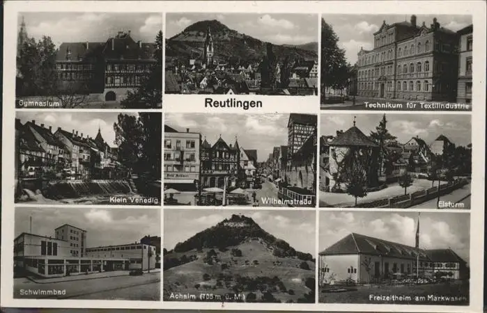 Reutlingen Technikum Wilhelmstrasse Schwimmbad Achalm Gymnasium Reutlingen postalisch nicht gelaufen 1921-1965 Alte Ansichtskarte Postkarte Elvigtle