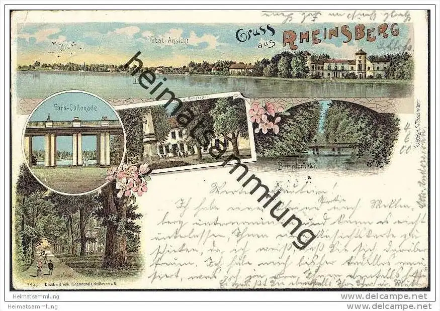 Rheinsberg - Park - Hotel zum Rathskeller - Billardbrücke - Total - Verlag C. Thurmann - Gebrauchsspuren - Ecken bestossen (G19378) gel. 1900
