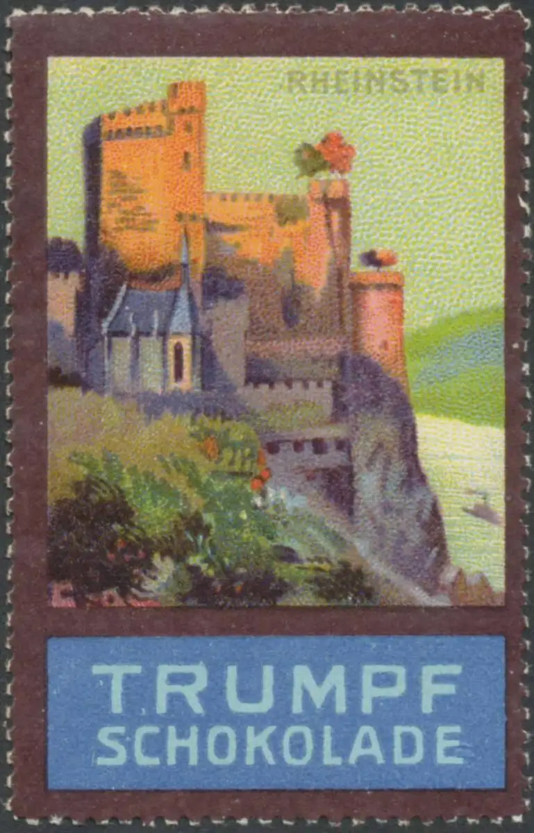 Trumpf Schokolade, Größe/Zustand: 6x4 , guter Zustand, Original alte Reklamemarke die seinerzeit für die Werbung benutzt wurde