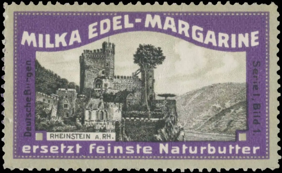 Serie I, Bild 1, Milka Edel-Margarine ersetzt feinste Naturbutter, Größe/Zustand: 3x5 , guter Zustand, Original alte Reklamemarke die seinerzeit für die Werbung benutzt wurde