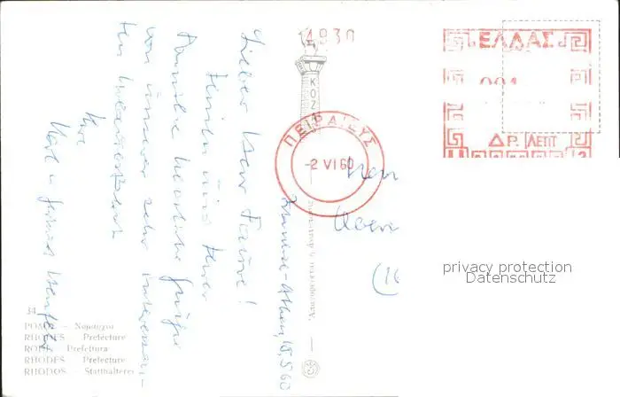 Rhodes Rhodos Greece Prefecture Rhodes postalisch gelaufen 1960 Erhaltung siehe scans Alte Ansichtskarte Postkarte WernPID4